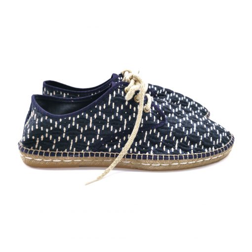 Blucher caballero plano de yute tostado e hilo crudo, plantilla de vacuno grabada y tejido marino con relieve.