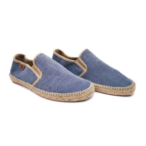 Cangrejo caballero con suela de yute natural, elásticos color natural y tejido algodón envejecido ultramar.