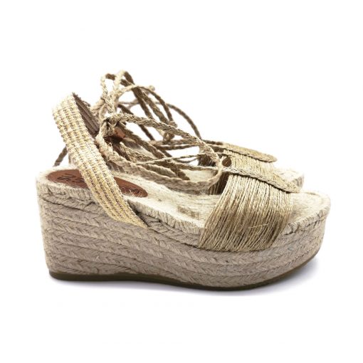 Sandalia plataforma con suela en yute natural. Material de sandalia en yute natural para atar en el tobillo y piso en cuero. Alpargata 100% natural en todos sus materiales. Altura de 1,5cm.